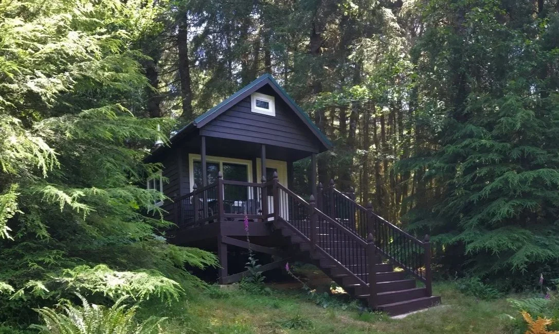 An off-grid, primitive cabin tucked in the coastal hills of Suislaw National Forest.